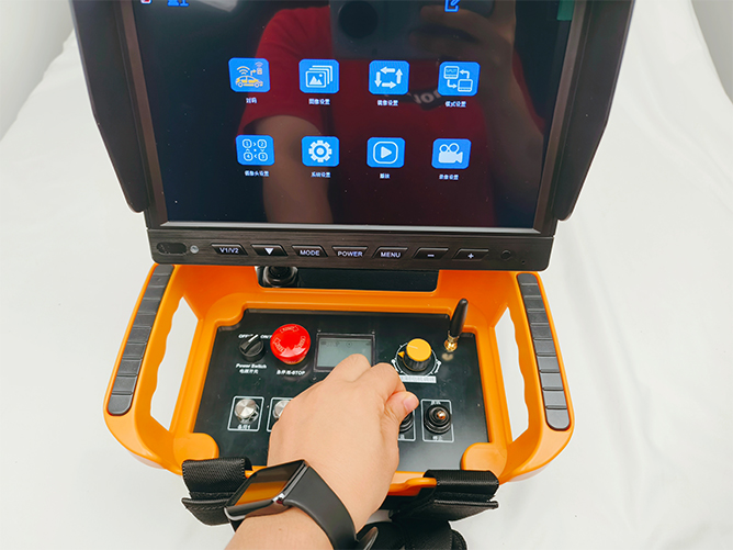 双摇杆式7寸触摸屏5个界面带虚拟按钮及数据反馈显示双向模式工业无线遥控器